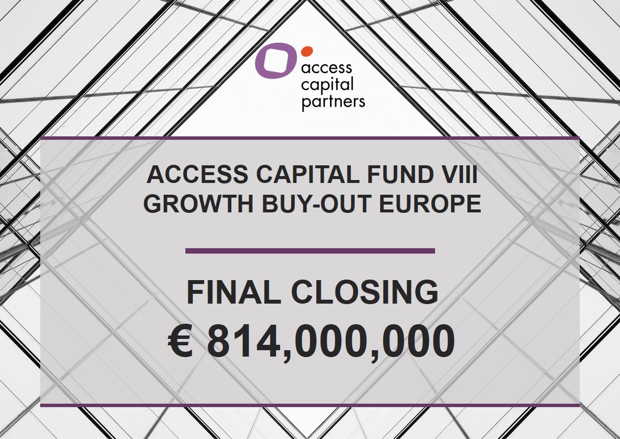 Access Capital Partners (“Access”), the European private assets specialist, is pleased to announce that it successfully completed the final closing of Access Capital Fund VIII Growth Buy-out Europe (“ACF VIII”) at €814 million, exceeding its original target of €700 million.
